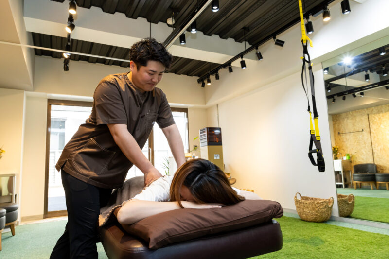 その後、触診や動作確認を行い、全身の状態を評価します。姿勢や筋肉の状態、動きのクセを確認し、不調の原因を見つけていきます。
